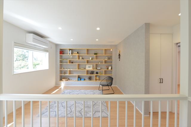 2階のフリースペースは、お子様の遊び場や、読書などそれぞれお家時間を過ごすスペースになっています。