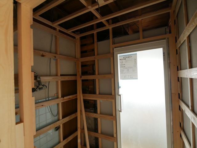 続いてお隣の脱衣室も改修工事が進んでいます。