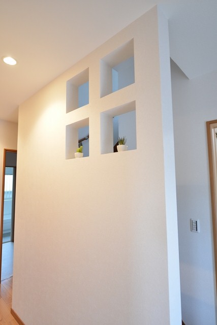 階段のニッチは壁の向こう側が見えるように作成しております。