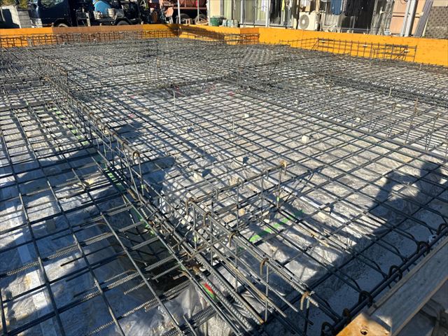 基礎配筋の施工が終わると、第三者機関の方による配筋検査が行われます