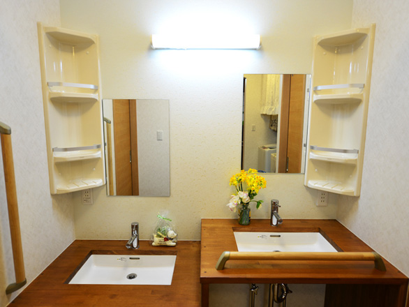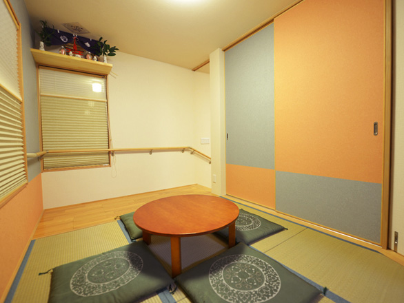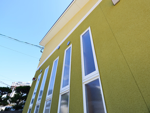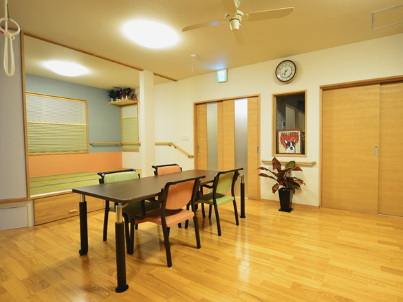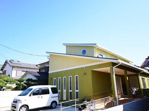 「ゆず」をイメージした美しいツートーンカラーの外壁、大きな片流れの屋根。サッシをリズミカルに配置することで、すっきりとした躍動感のある外観となっています。内部は利用者様に気持ちよくお過ごしいただけるよう、明るいナチュラルカラーでコーディネートしています。施設らしさを感じさせない、住宅の延長線上にある「住まいのデザイン」にこだわりました。