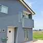 豊かな自然に囲まれ、シックなブルーがひときわ目をひく外観。アンティーク調の玄関ドアがアクセントになっています。
