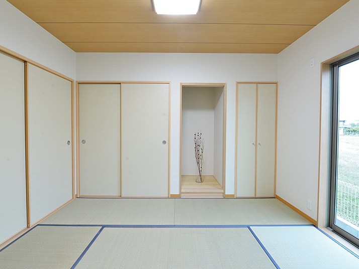 リビングと繋がる和室は、畳の周りをフラットにして、LDKとの一体感を生み出しています。
