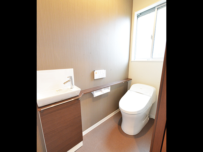 陽光あふれるエントランスは、緩やかなカーブを描いた上がり框が印象的。足元のライティングで夜も魅力的です。